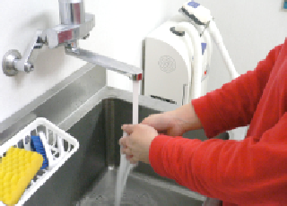 • 手洗い後は、ジェットタオルを使用し、十分乾燥させて消毒しています。手洗い後は、ジェットタオルを使用し、十分乾燥させて消毒しています。